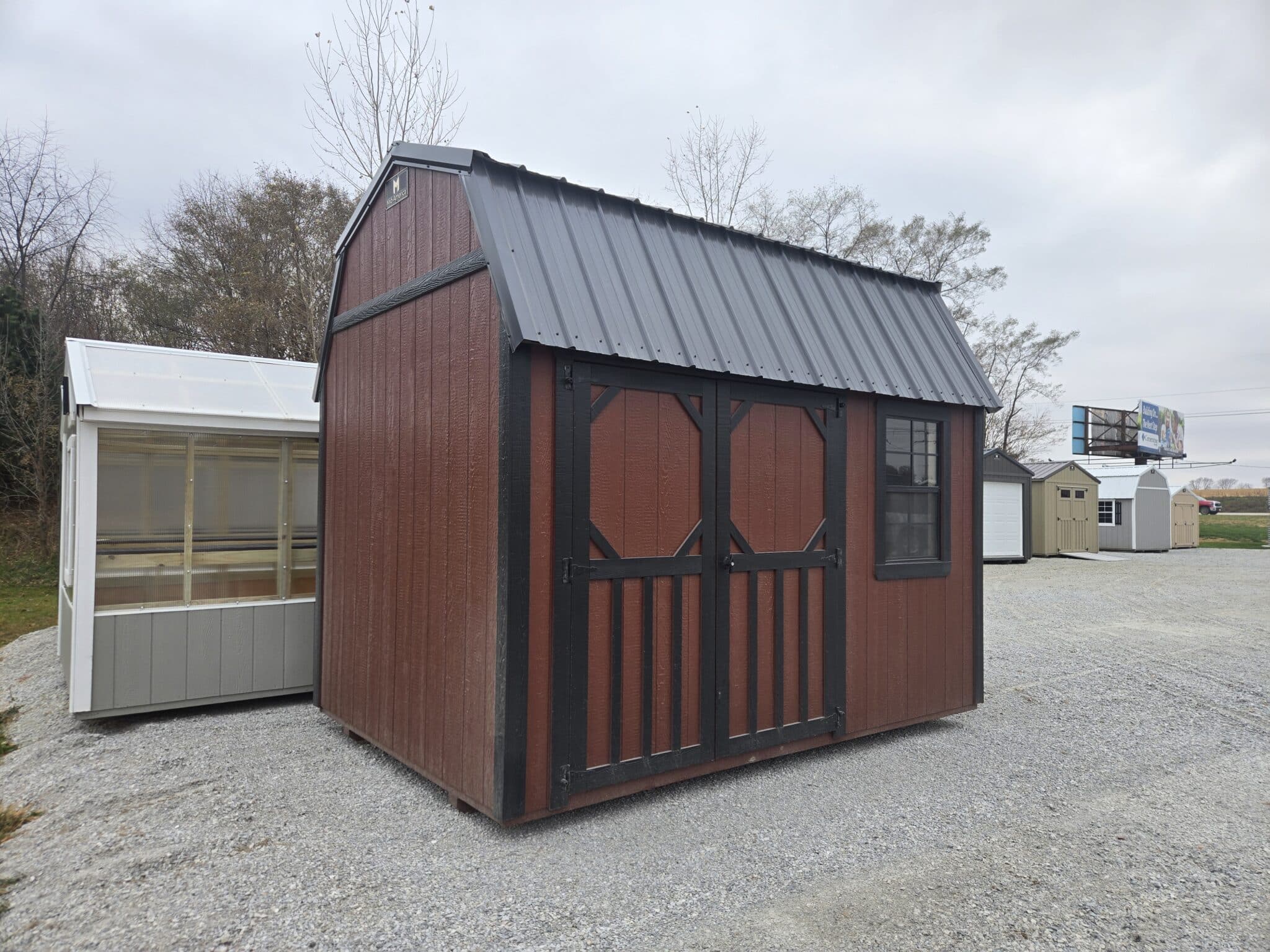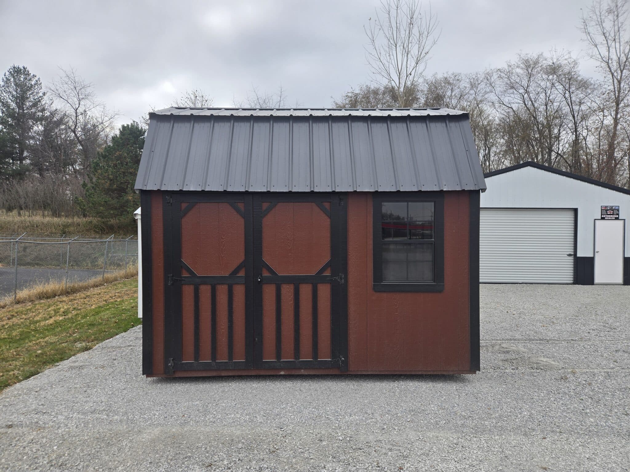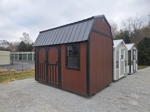 This beautiful 8×12 Lofted Garden Shed in Rustic Red and Black is just waiting for your backyard!!